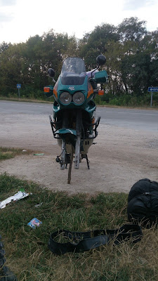Но путь получился относительно не долгим. Почувствовал как начало вилять. Думаю проколол все же заднюю камеру опять. И что бы не нагружать заднее колесо оттормаживаюсь передним - и тут я словил адреналина! Все стало на свои места, ногой на тормоз, аккуратно к обочине. Спущено переднее колесо.